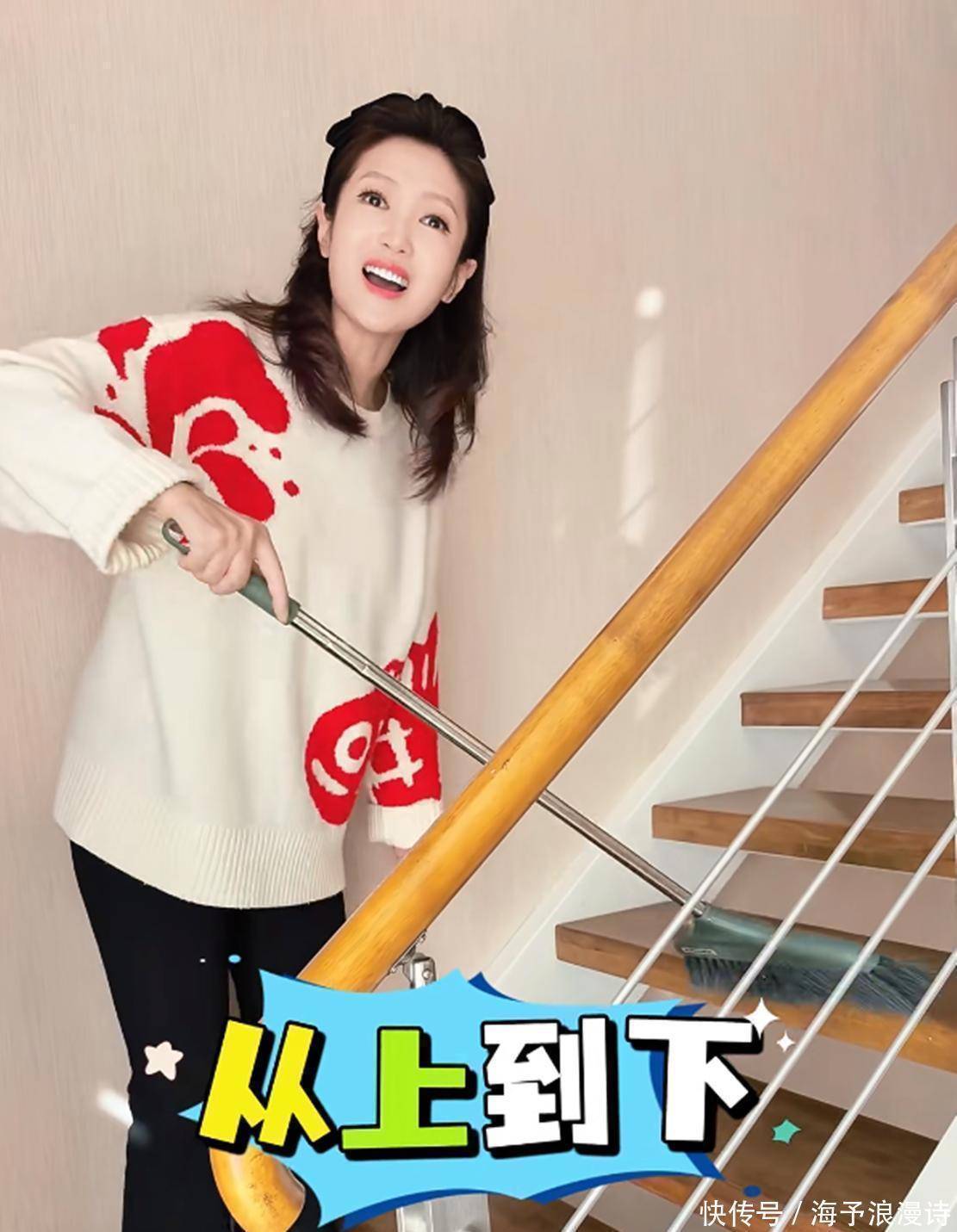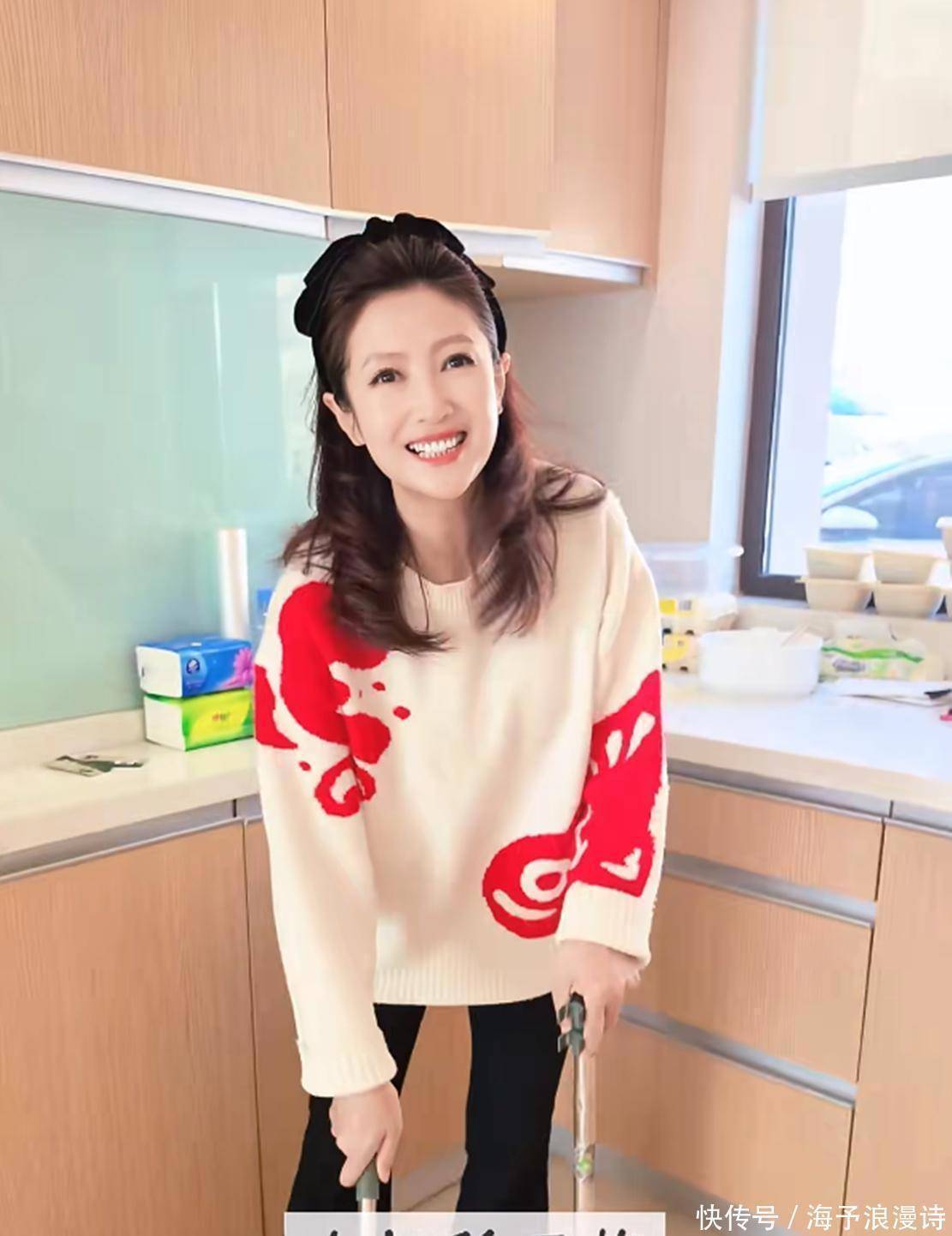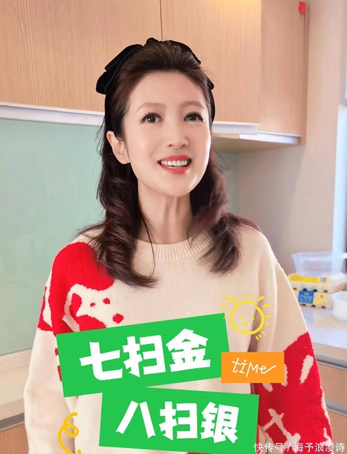 视频里,已经48岁的春妮迎来了本命年,她穿着一件米白色毛衣,毛衣上印着明显的红色图案,搭配黑色长裤和白色鞋子,整体看起来休闲又舒服。说到底是在家搞大扫除,春妮还是特意化了个自然清新妆,面对镜头笑容满满,给人感觉特亲切。她那披肩的中长发配上黑色发饰,顿时多了几分优雅韵味。整个人看起来明显比实际岁数年轻许多,还散发着成熟女性的迷人风采。